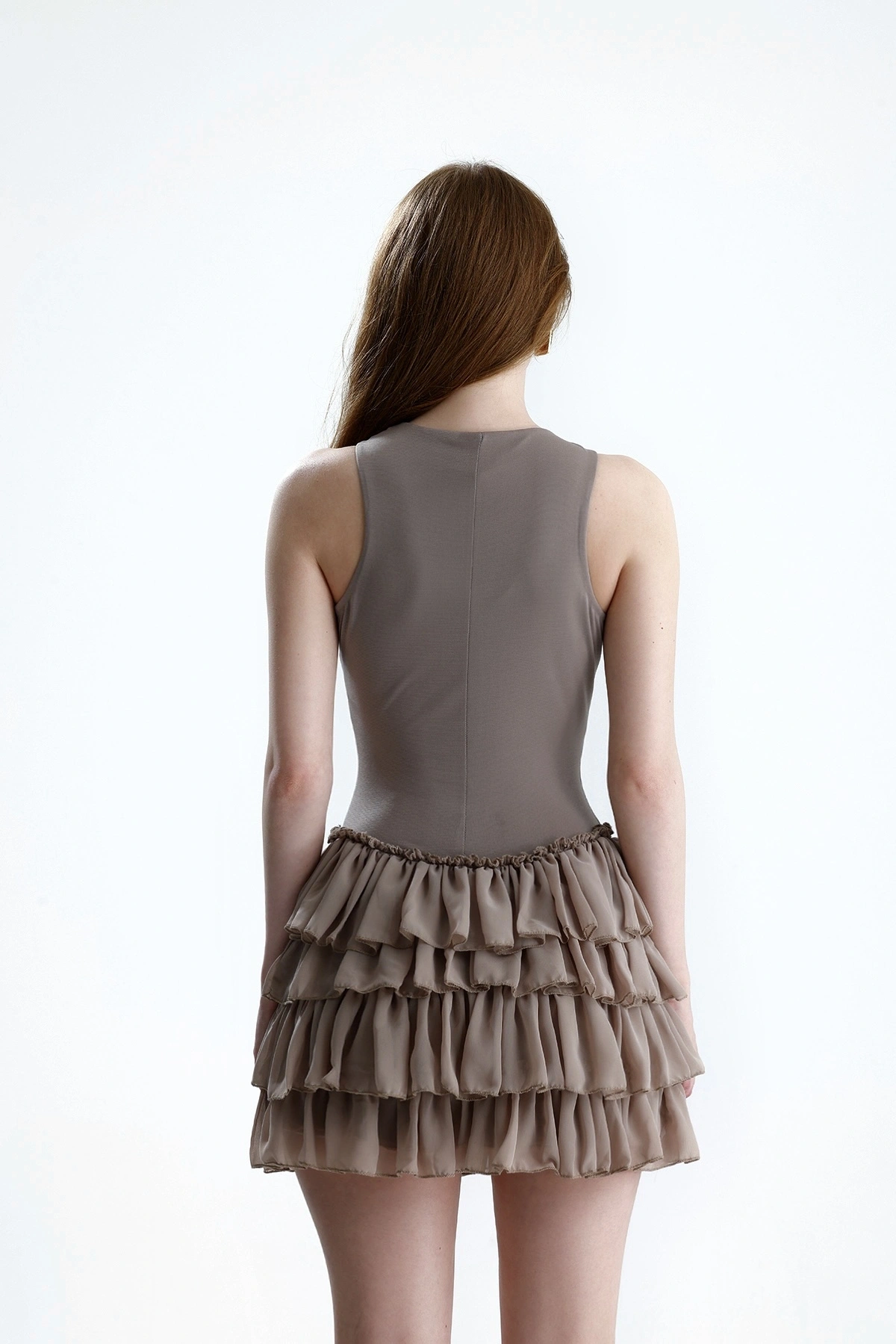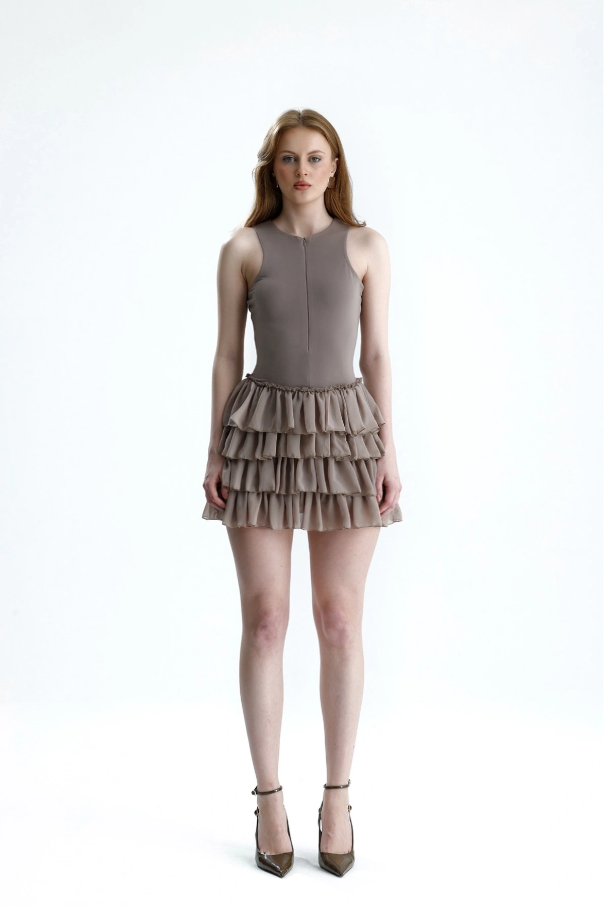 Nora Şortlu Mini Fırfırlı Füme Elbise