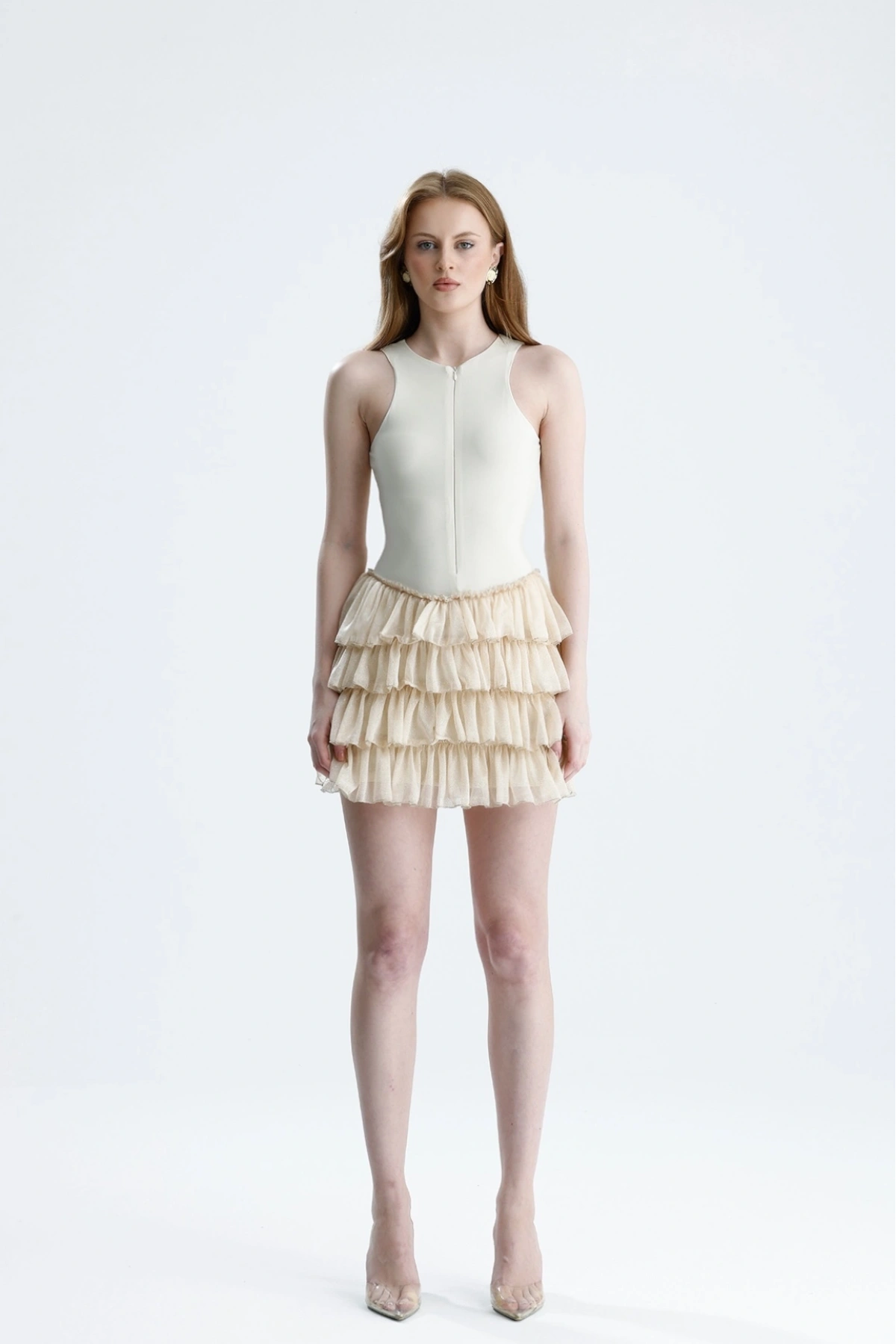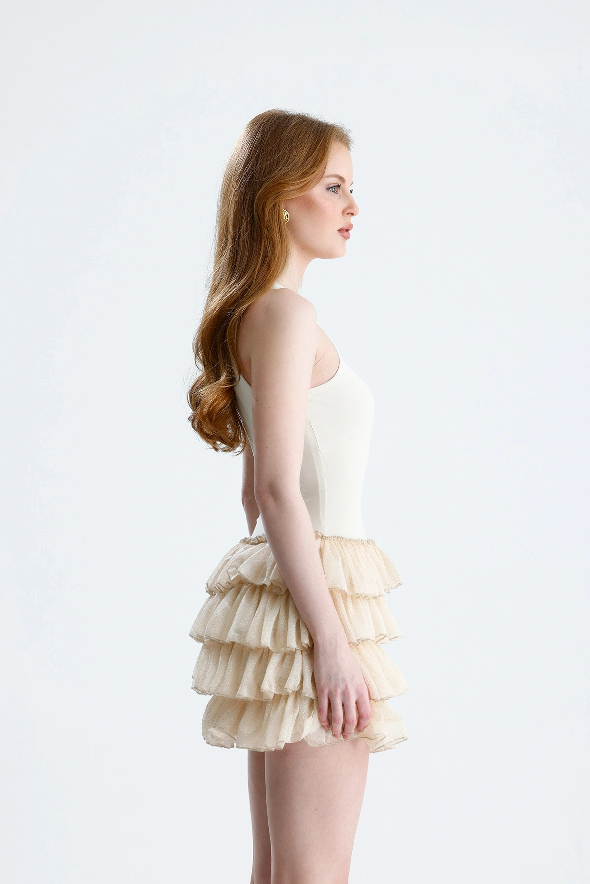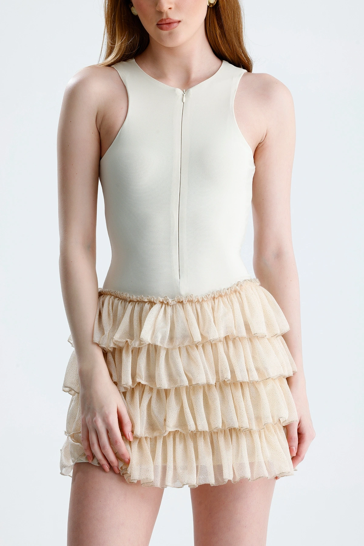 Nora Şortlu Mini Simli Fırfırlı Elbise